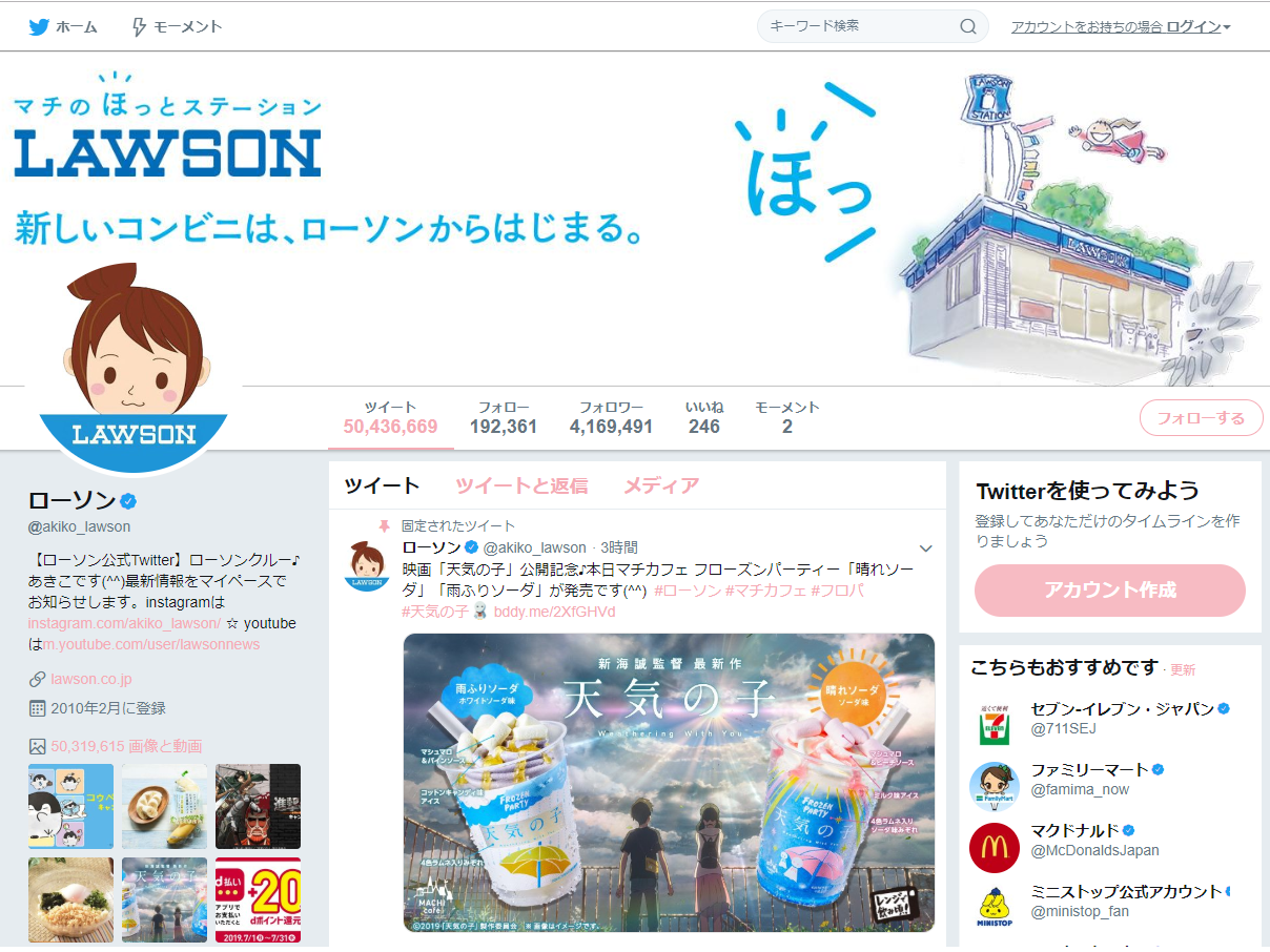 ローソンは、一日に5~10件程度のペースで情報発信を行っている。
